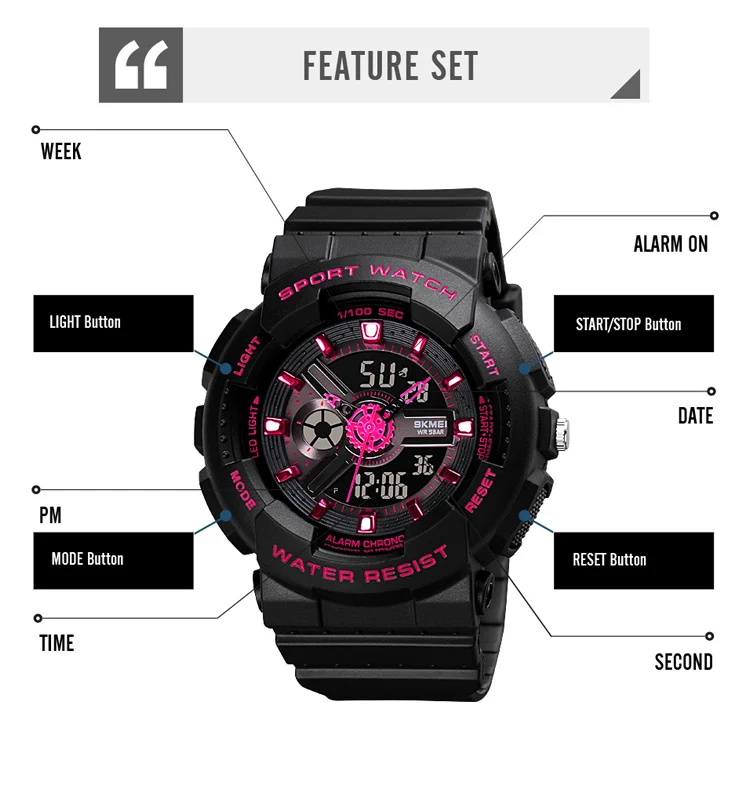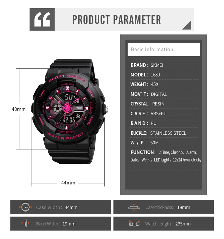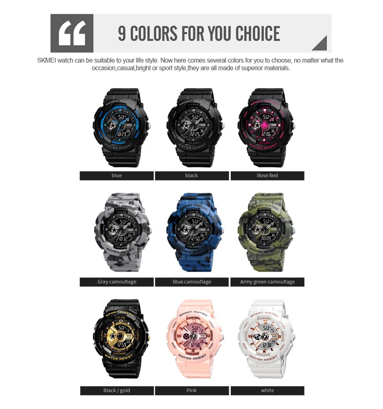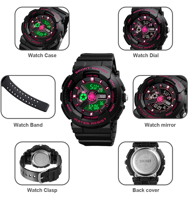 Все брендовые часы SKMEI изготовлены с высококачественным корпусом, ремешком, механизмом и японской батареей. Все часы протестированы водонепроницаемым испытательным устройством на 100%