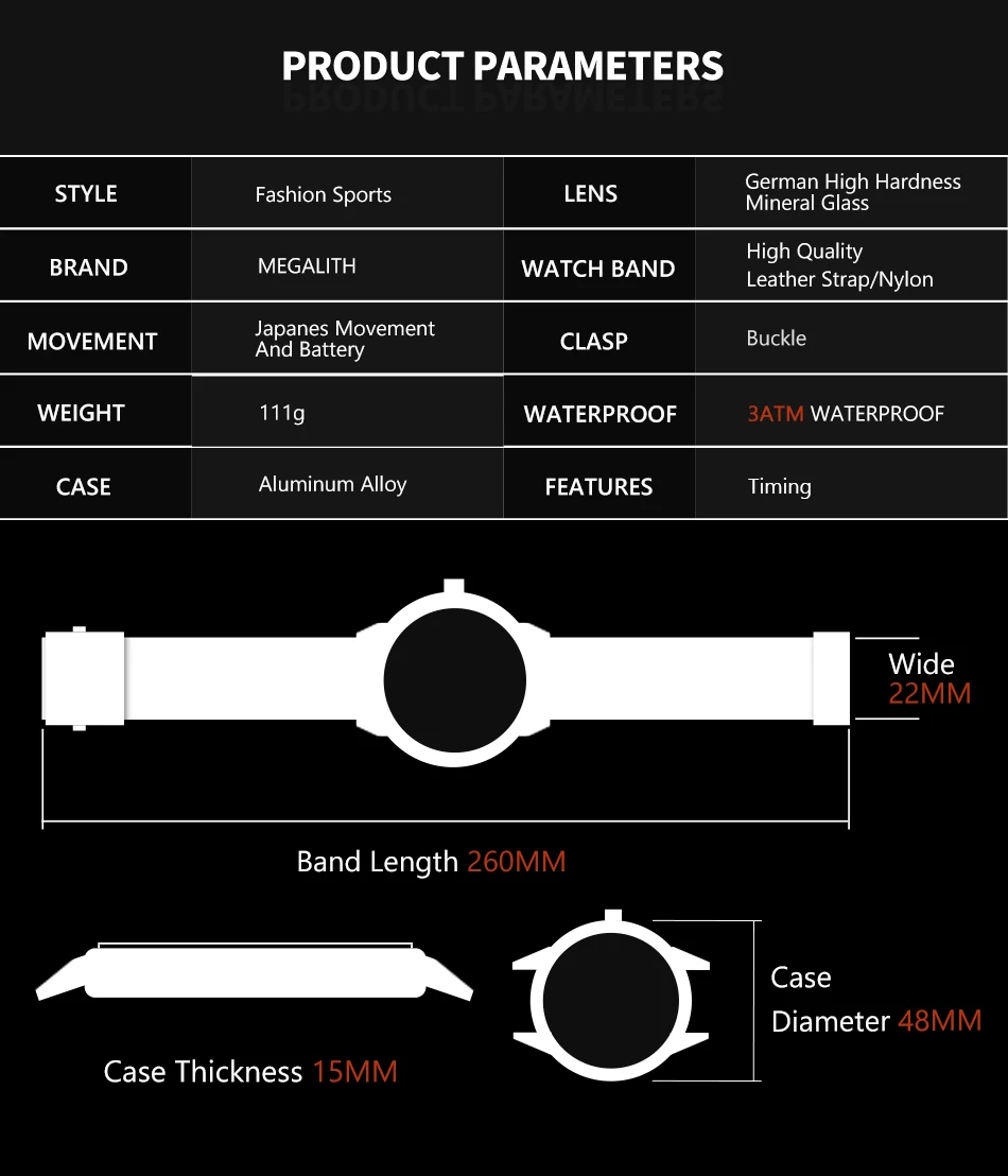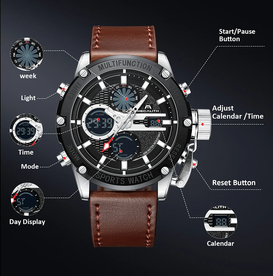 Мужские часы Megalith 8239M Black-SilverНет в наличии
