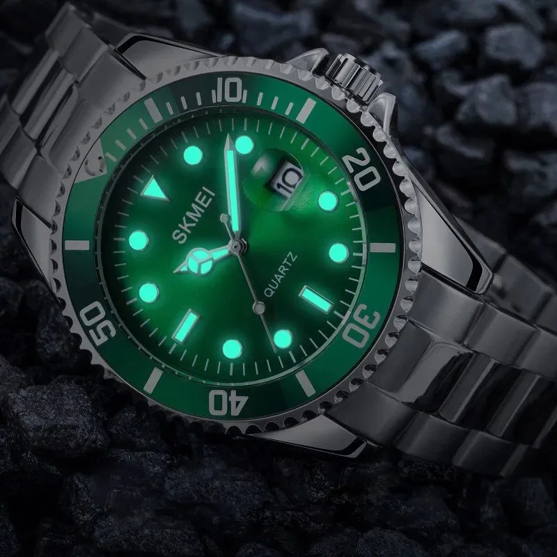 Высококачественные кварцевые часы из нержавеющей стали Skmei 1779SIGN Silver-Green