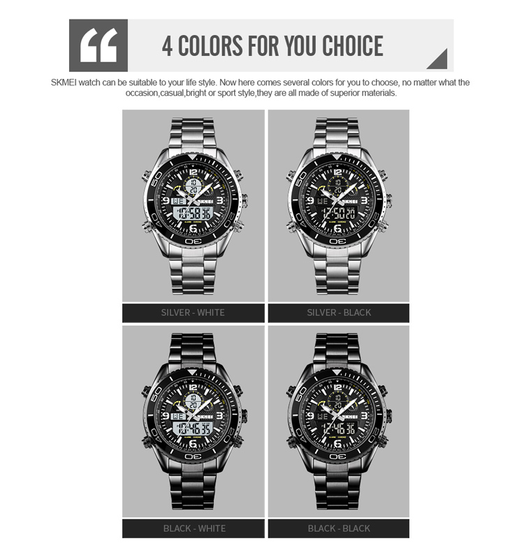 Все брендовые часы SKMEI изготовлены с высококачественным корпусом, ремешком, механизмом и японской батареей. Все часы протестированы водонепроницаемым испытательным устройством на 100%