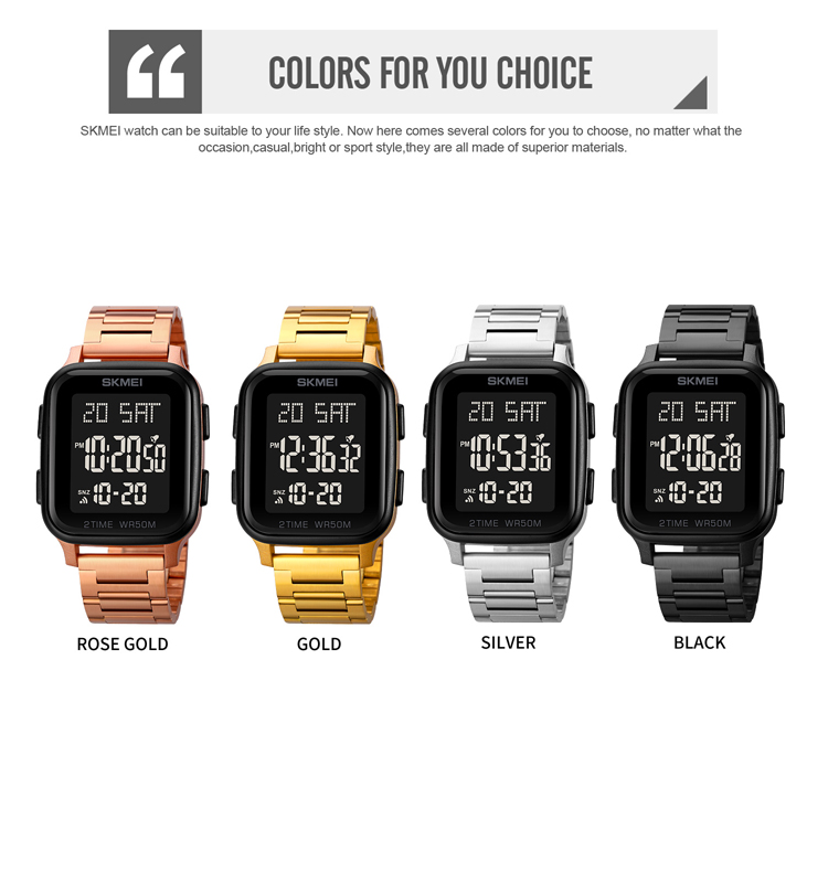 Все брендовые часы SKMEI изготовлены с высококачественным корпусом, ремешком, механизмом и японской батареей. Все часы протестированы водонепроницаемым испытательным устройством на 100%