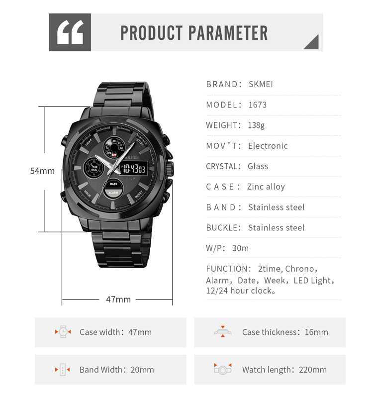 Все брендовые часы SKMEI изготовлены с высококачественным корпусом, ремешком, механизмом и японской батареей. Все часы протестированы водонепроницаемым испытательным устройством на 100%