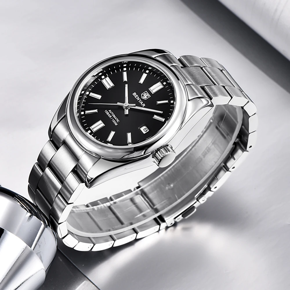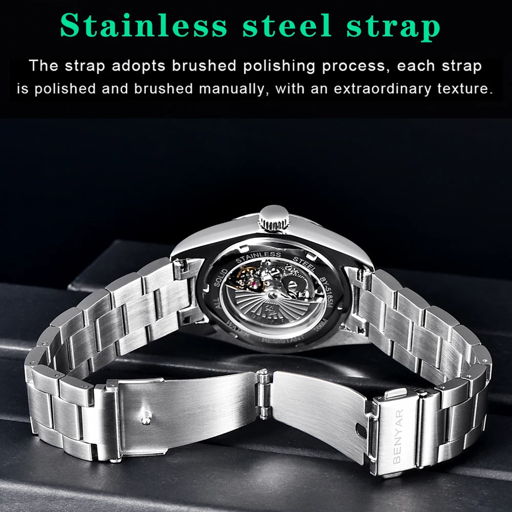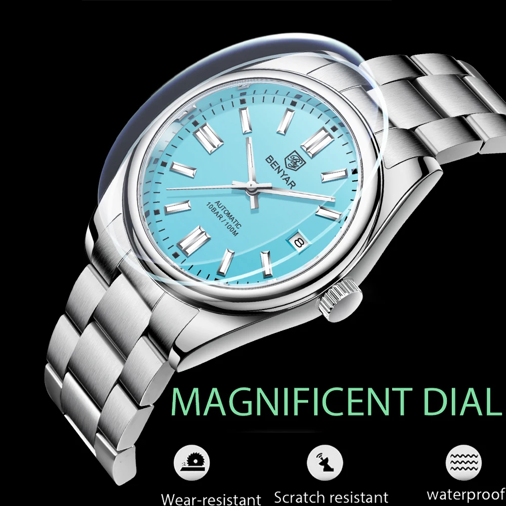 Представляем часы Benyar BY-5185 Blue – стильный аксессуар для современного мужчины. Эти механические часы с автоподзаводом сочетают в себе классические элементы и современный дизайн. Корпус из высококачественной стали имеет диаметр 38 мм и водонепроницаемость до 100 метров, что делает его отличным выбором для активного образа жизни.