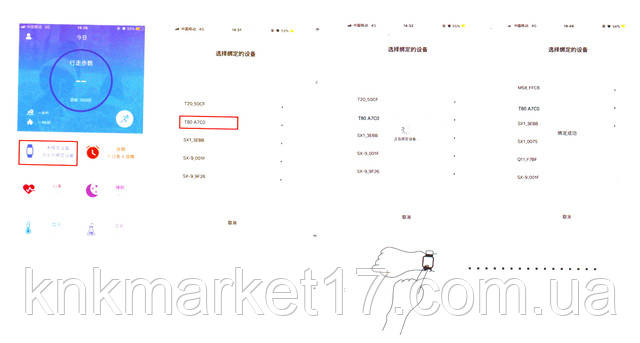 Після завантаження та реєстрації додатки увімкніть мобільний Bluetooth, відкрийте інтерфейс управління пристроєм в додатку і натисніть «Керування зв'язуванням > зв'язати нове пристрій. В очікуванні Bluetooth для пошуку адреси Bluetooth на сторінці відключення браслета. Натисніть на Bluetooth-адреса браслета на вашому мобільному телефоні, і ви можете прив'язати браслет