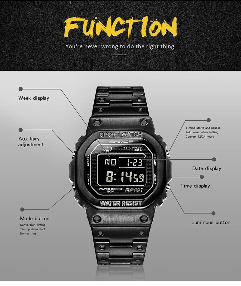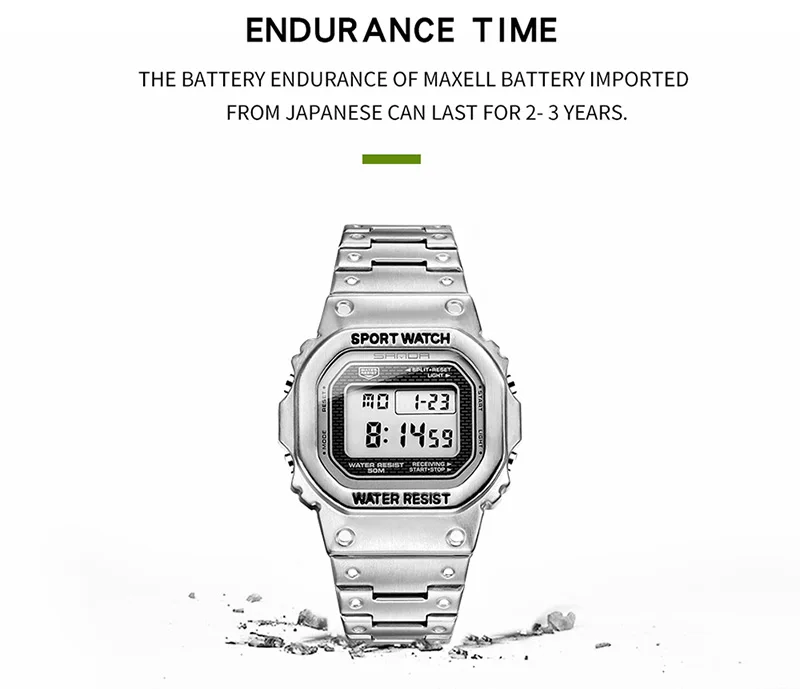 | Функції | Години, хвилини, секунди, дата, день тижня, місяць, секундомір, будильник, підсвітка |
