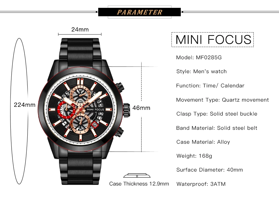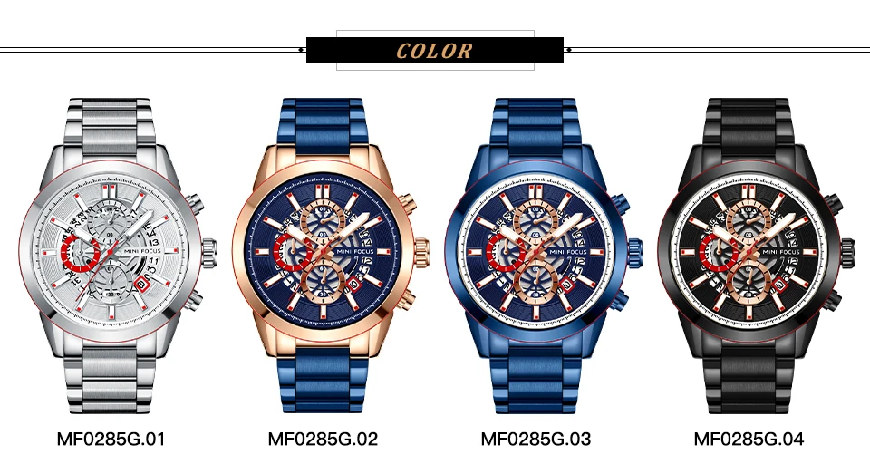 Модель MF0285G від оригінального бренда Mini Focus виготовлена з функціями: годинник, хвилини, секунди, дата, хронограф. Обладнана ударостійким мінеральним склом із герметичними властивостями. Представлена в годинниковій сталі. Цей матеріал: