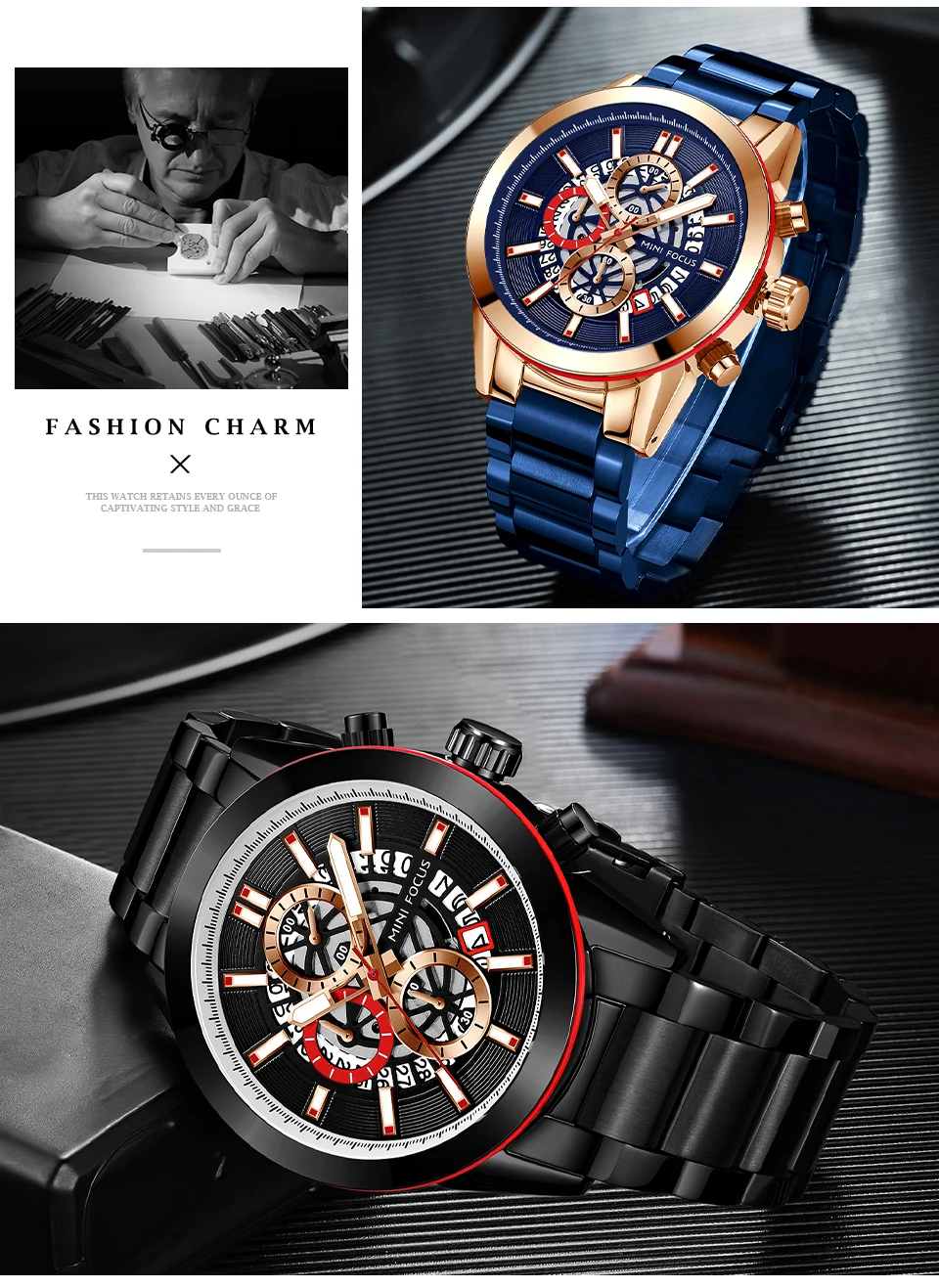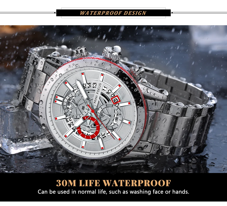 У годиннику допустимо мити руки або потрапити під дощ, оскільки водонепроникність 30 метрів. Ремінець зроблений у формі браслета з розкладною застібкою. У процесі носіння зручний і простий. Годинник максимально практичний для щоденної експлуатації, не розстібається й має стильний вигляд.
