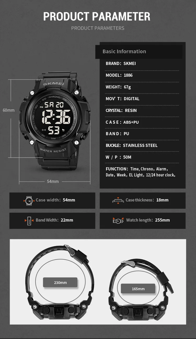 Цифровий водонепроникний (50 м) годинник Skmei 1886BKWT Black-WhiteГотово до відправки