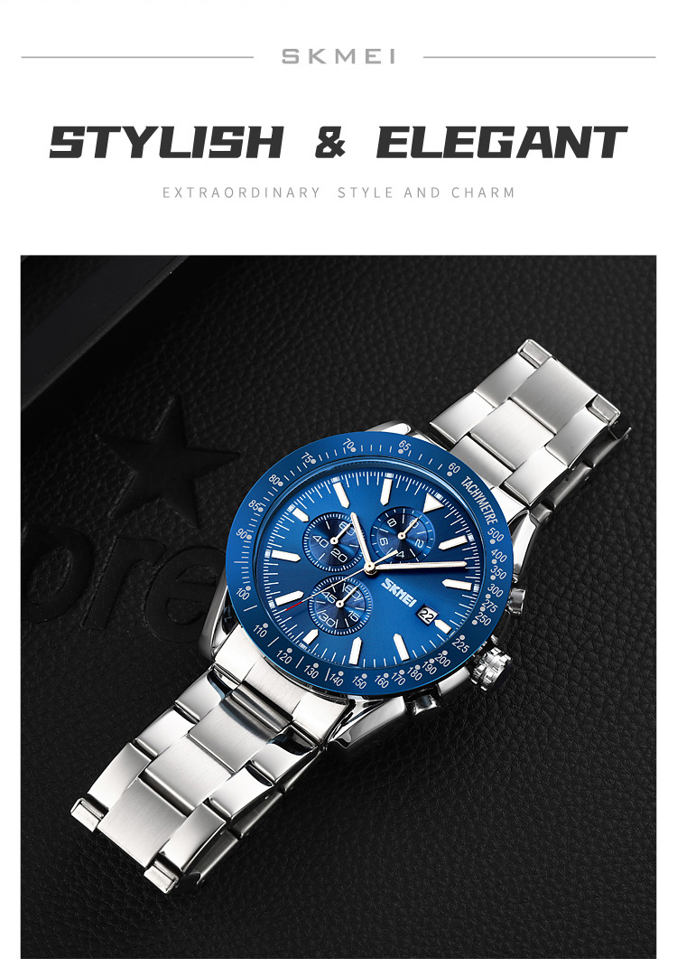 Розкішний кварцовий наручний годинник Skmei 9253PRGBU Rose Gold-Blue Sil