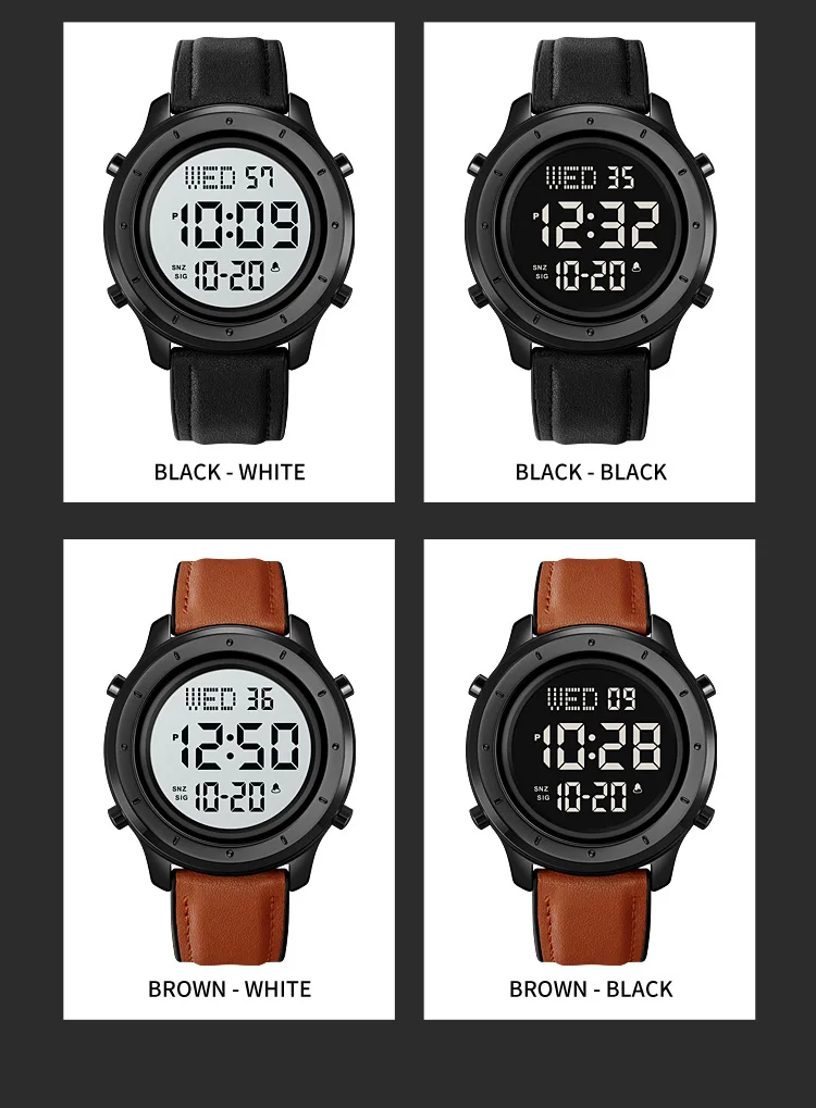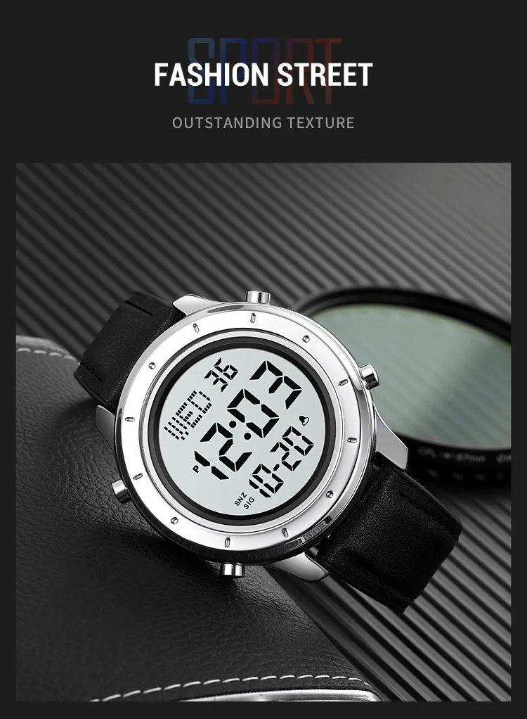 Багатофункціональний світлодіодний цифровий годинник Skmei 1864LBKWT Black-White Leather