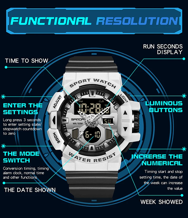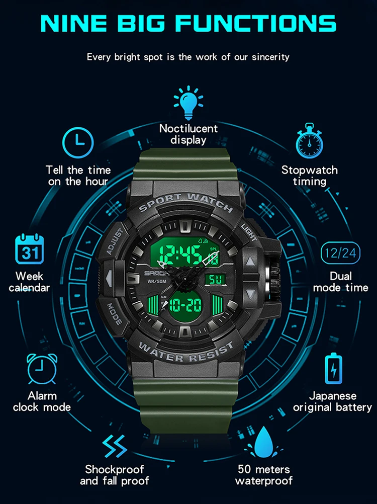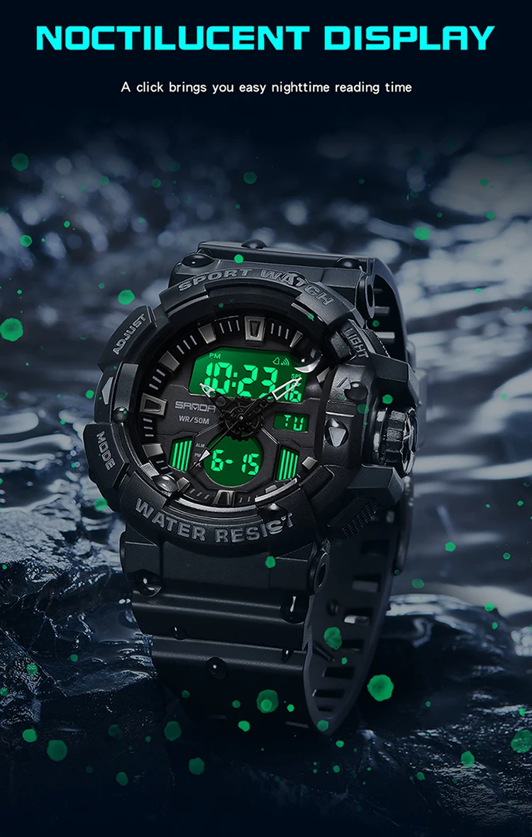 Сигнализация, Автоматическая Дата, хронограф, день/дата, несколько часовых поясов, водостойкий, водонепроницаемый, светодиодный дисплей, светящийся, недельный дисплей, светящиеся стрелки, подсветка |