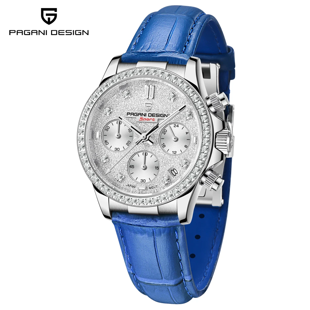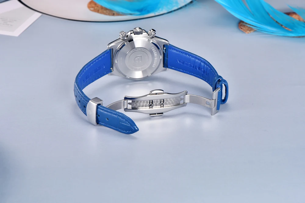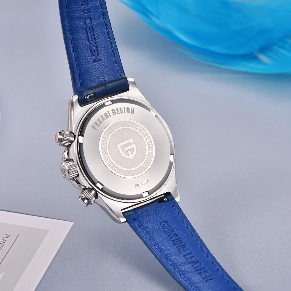 Гібридний (Кварц + механічний хронограф) годинник із сапфіровим склом Pagani Design PD-1730 Silver-BlueГотово до відправки