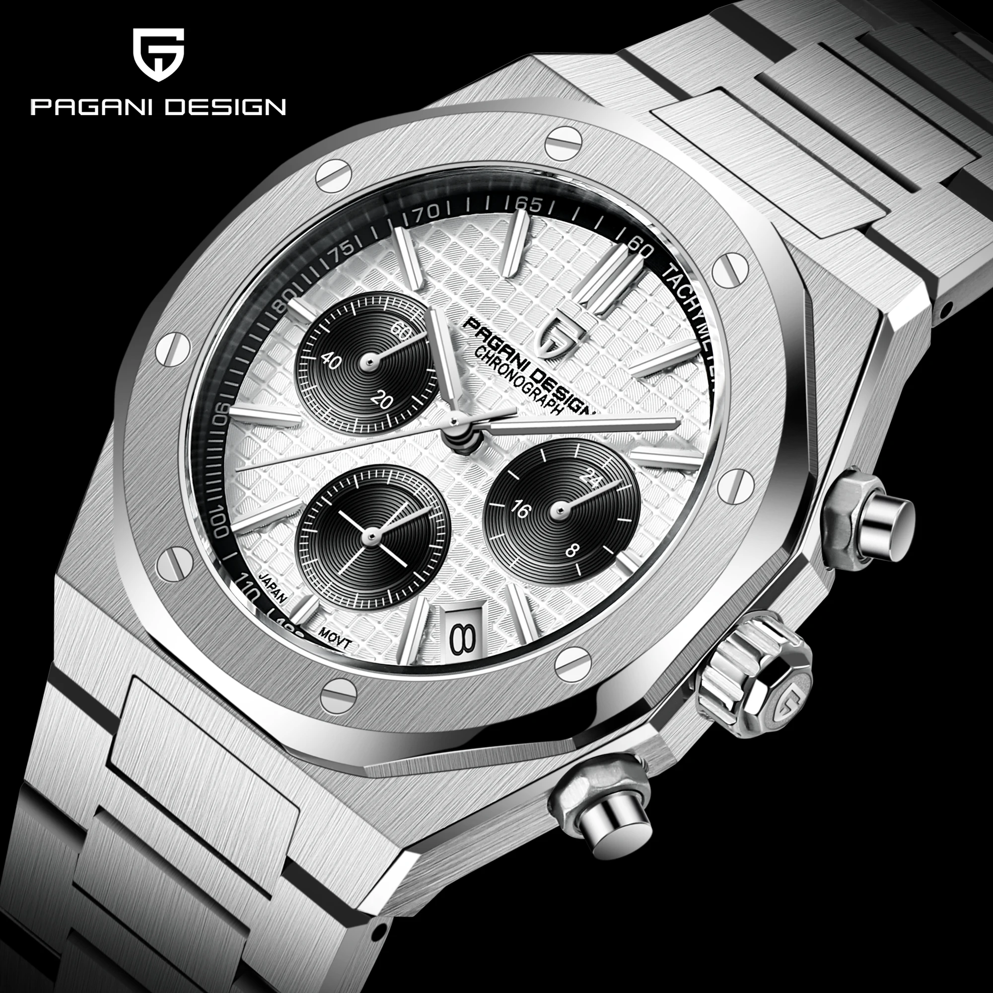 Гібридний (Кварц + механічний хронограф) годинник із сапфіровим склом Pagani Design PD-1707 Silver-Silver