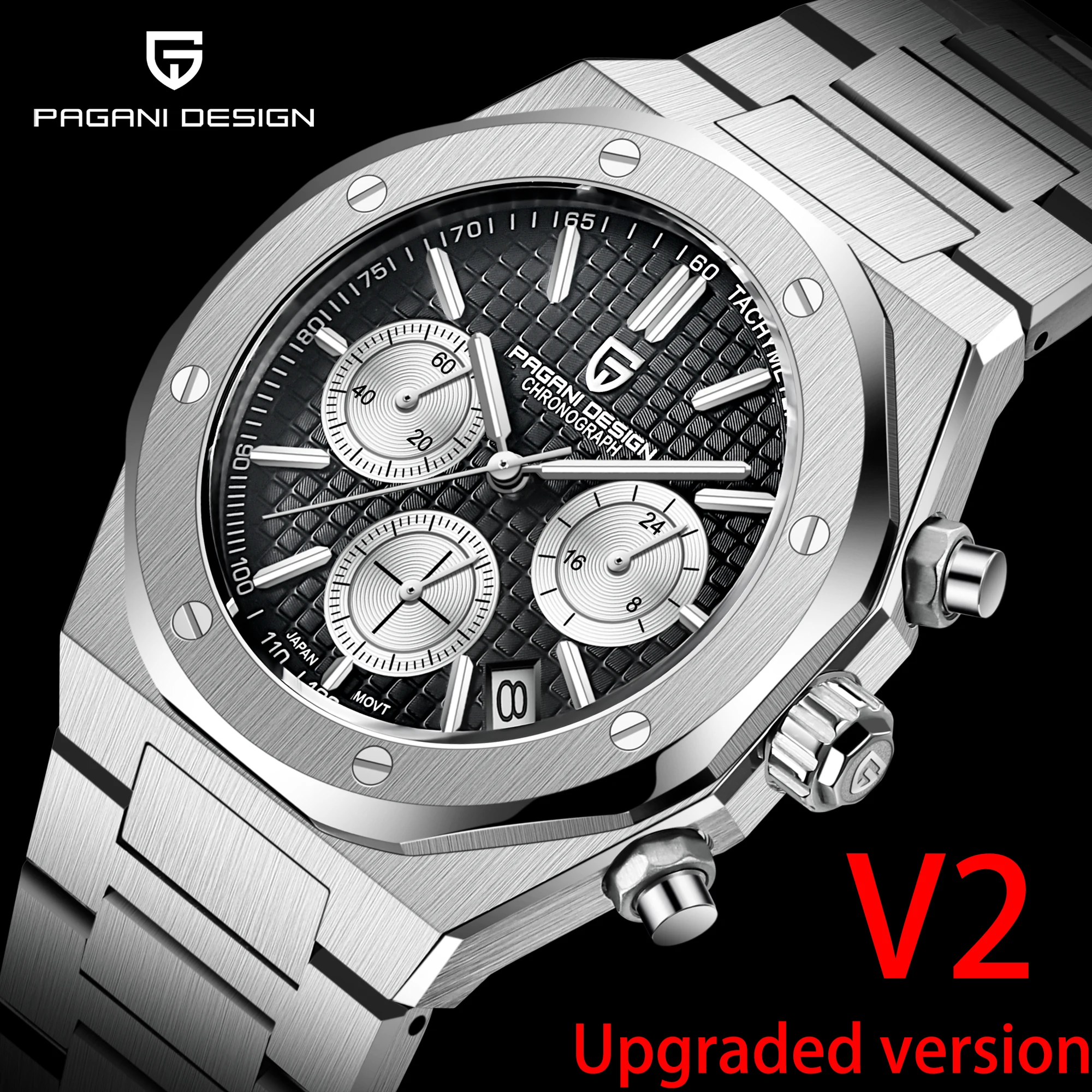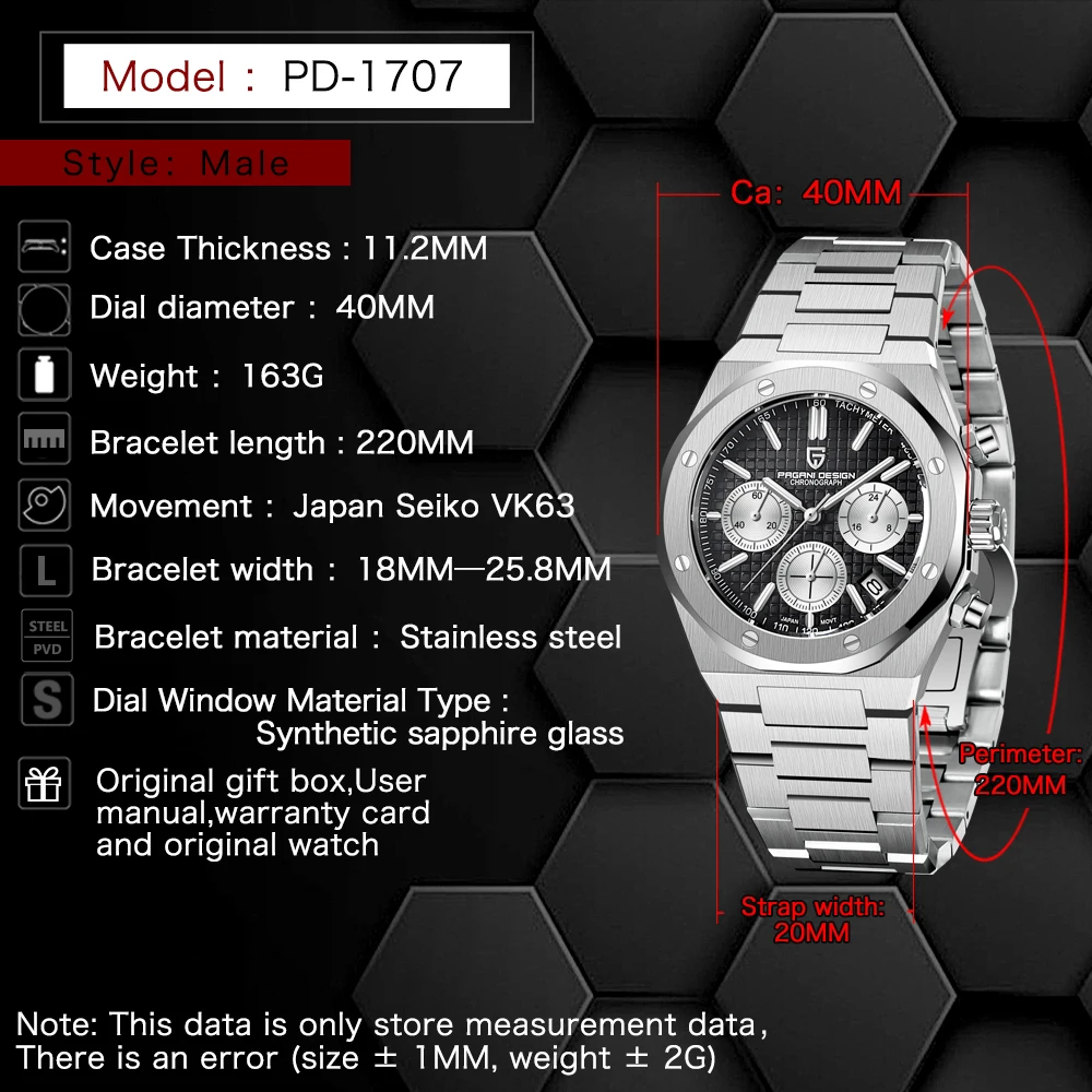 Гібридний (Кварц + механічний хронограф) годинник із сапфіровим склом Pagani Design PD-1707 Silver-SilverГотово до відправки