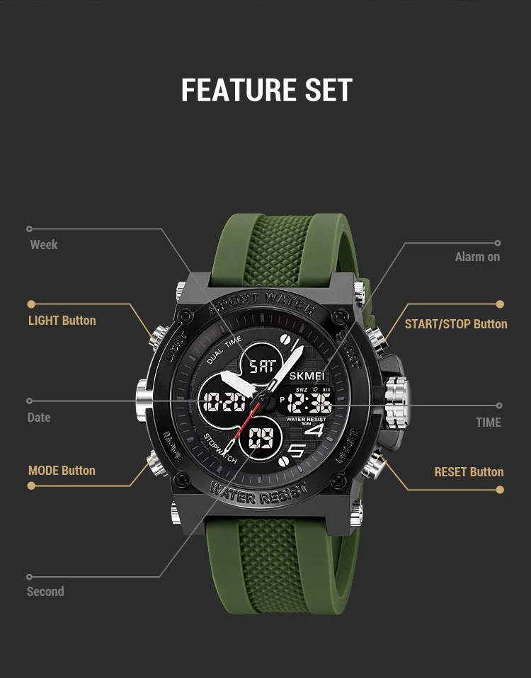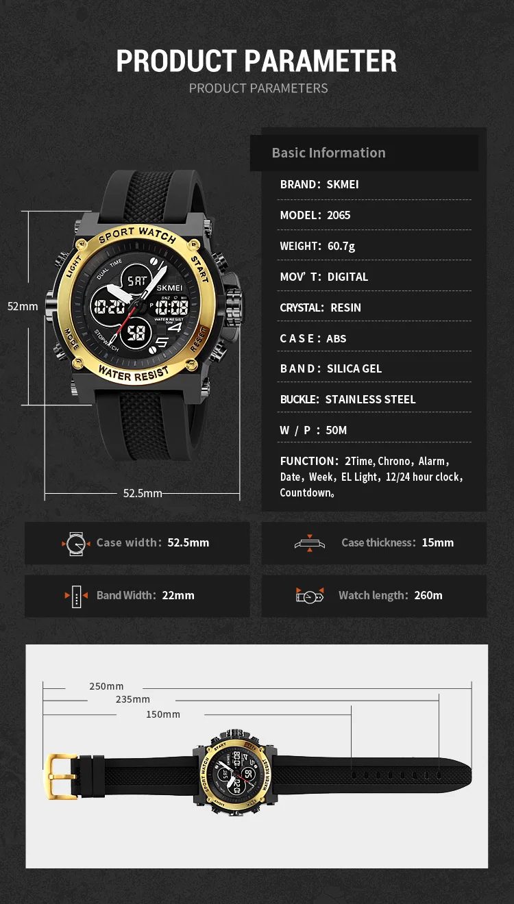 Всі брендові годинники SKMEI виготовлені з високоякісним корпусом, ремінцем, механізмом та японською батареєю. Всі годинники протестовані водонепроникним випробувальним пристроєм на 100%