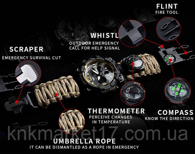 Тактичний багатофункціональний годинник Patriot 005CMGYSU ЗСУ Сірий камуфляж Паракордовий ремінець ACU + Коробка.