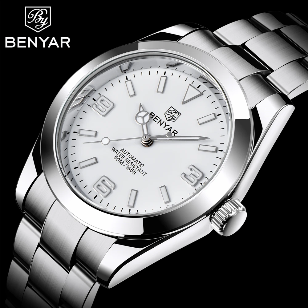 Механічний з автопідзаводом водонепроникний (5ATM) годинник Benyar BY-5177 Black