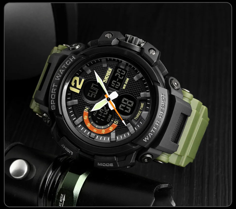 Водонепроникний цифровий наручний годинник Skmei 1343 Black-Khaki Wristband